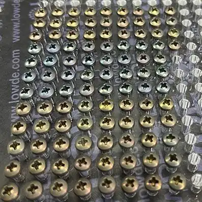 Lote de 100 tornillos DIN 7981 Ø2,9x8 mm. de Titanio grado 2. Anodizados mate. colores entre amarillo y azulado mate.