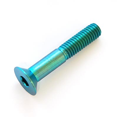 Avellanado DIN 7991 M6x35 mm. de titanio gr. 5 (6Al4V) Roscado 18 mm. Cabeza para llave allen. El tornillo mide 35 mm. de longitud incluida la cabeza. Longitud de rosca 18 mm. Diámetro máximo cabeza: 12 mm. Peso: 4 gramos. Anodizado en color verde esmeralda