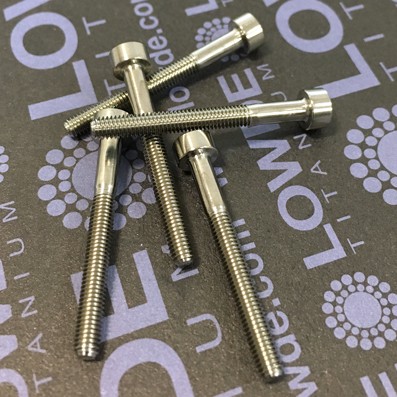 1 Tornillo DIN 912 M3x27 mm. de TITANIO gr. 5 (6Al4V)Para llave allen de 2,5 mm. Altura cabeza: 3 mm. Diámetro cabeza: 5,5 mm. Longitud de rosca: 20 mm. (7 mm. sin roscar). Rosca laminada. Límite elástico: 890 MPa. Rotura a tracción: 950 MPa. Certificado: LOWDE/201609152