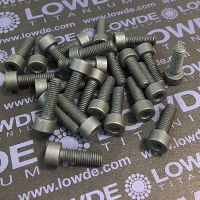 25 Tornillos DIN 912 (ISO4762) M5x0,80x16 mm. Titanio grado 5 (6Al4V) AMS 4928. Recubiertos de grasa sólida basada en busulfuro de molibdeno (MoS2). El recubrimiento tiene nombre comerical "EVERLISK 1301". Controles de tolerancias en todas sus cotas. Se suministra con certificado DIN 10204 3.1 (trazabilidad, propiedades mecánicas, composición química, etc.) y ficha completa del recubrimiento.