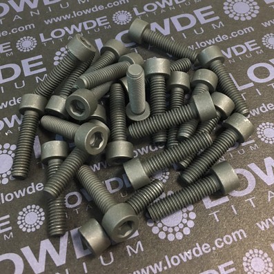 Lote de 25 tornillos DIN 912 (ISO4762) M6x1,00x25 mm. Titanio grado 5 (6Al4V) AMS 4928. Recubiertos de grasa sólida basada en busulfuro de molibdeno (MoS2). El recubrimiento tiene nombre comerical "EVERLISK 1301". Controles de tolerancias en todas sus cotas. Se suministra con certificado DIN 10204 3.1 (trazabilidad, propiedades mecánicas, composición química, etc.) y ficha completa del recubrimiento.