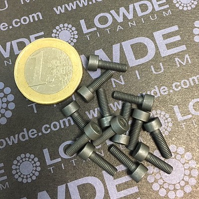 93 Tornillos DIN 912 (ISO4762) M3x0,50x10 mm. Titanio grado 5 (6Al4V) ASTM B348. Recubiertos de grasa sólida basada en bisulfuro de molibdeno (MoS2). El recubrimiento tiene nombre comerical "EVERLUBE 620C". Controles de tolerancias en todas sus cotas. Se suministra con certificado DIN 10204 3.1 (trazabilidad, propiedades mecánicas, composición química, etc.) y ficha completa del recubrimiento.