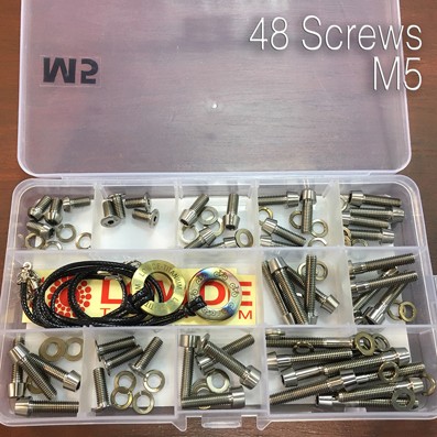 El kit de 48 tornillos M5 la medida sin duda más corriente en la mayoría de bicicletas. Potencia de manillar, sujección manetas, discos de freno, tijas, sillines, portabidones. La caja contiene además de los 48 tornillos arandelas y dos colgantes LOWDE.