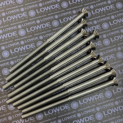 1 Tornillo avellanado DIN 7991 M12x1,75x220 mm. de titanio gr. 5 (6Al4V) Cabeza para llave allen de 8 mm. El tornillo mide 220 mm. de longitud incluida la cabeza. La longitud roscada es de 110 mm. Lote: LOWDE/534/385-2303904