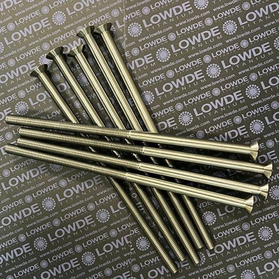 1 Tornillo avellanado DIN 7991 M12x1,75x280 mm. de titanio gr. 5 (6Al4V) Cabeza para llave allen de 8 mm. El tornillo mide 280 mm. de longitud incluida la cabeza. La longitud roscada es de 140 mm. Lote: LOWDE/534/385-2303904