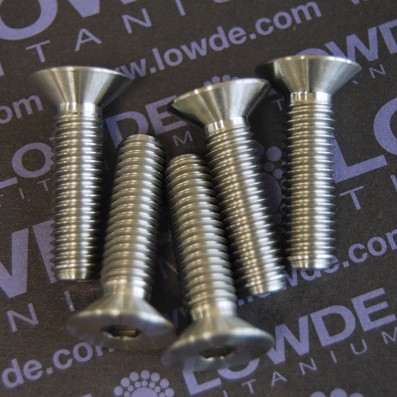 1 Tornillo avellanado DIN 7991 M8x1,25x30 mm. de Titanio gr. 5 (6Al4V) Cabeza para llave allen. El tornillo mide 30 mm. de longitud incluida la cabeza. Lot.: LWD/534/903-2304652