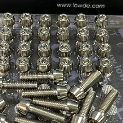 1 Tornillo DIN 912 CÓNICO (tapered) M4x0,70x14 mm. de Titanio gr. 5 (6Al4V). Diámetro base de la cabeza: 7 mm. Diámetro parte superior de la cabeza: 5,5 mm. Altura cabeza: 4 mm. Para llave allen de 3 mm. Lote: LWD/534/974-20240420 Ref. Clar.