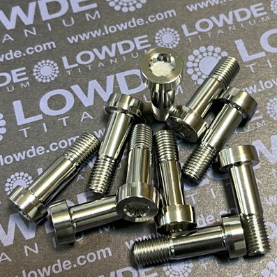 Cheese socket head screw DIN 65517-08016A (Mj8x1,00x27,5 mm.) Titanio grado 5 (6Al-4V) AMS 4965M (1100 MPa). Cabeza forjada, mecanizado, fondo huella estampada, y rosca laminada, según norma. Controles de tolerancias en todas sus cotas. Certificado UNE EN10204. Lot.: LWD/304-22801157