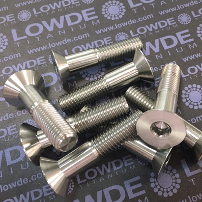 1 Tornillo avellanado DIN 7991 M12x1,75x55 mm. de titanio gr. 5 (6Al4V) Cabeza para llave allen de 8 mm. El tornillo mide 55 mm. de longitud incluida la cabeza. La longitud roscada es de 30 mm. Lote: LOWDE/534/053-2203621