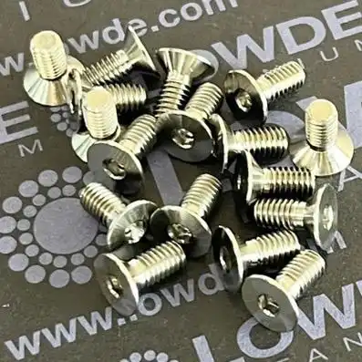 1 Tornillo avellanado DIN 7991 M4x0,70x9 mm. de Titanio gr. 5 (6Al4V) Cabeza para llave allen 2,5 mm. El tornillo mide 9 mm. de longitud incluida la cabeza. Lot.: LWD//534/300-20241205