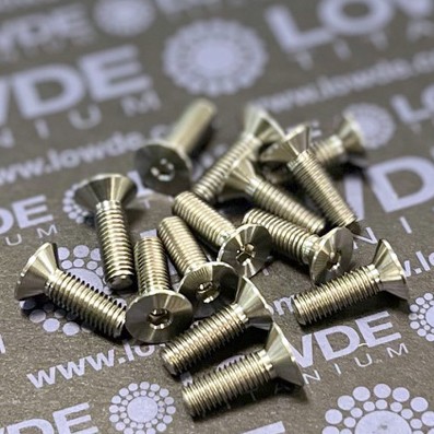 1 Tornillo avellanado DIN 7991 (ISO10642) M5x0,80x16 mm. de Titanio grado 5 (6A-l4V) Cabeza para llave allen. El tornillo mide 16 mm. de longitud incluida la cabeza. Lot.: LWD/534307-221008 - LWD/534/58-24040619
