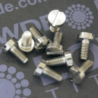 1 Tornillo DIN 84 M3x6 mm. de Titanio gr. 6 (6Al4V). Para destornillador plano. Altura cabeza: 1,9 mm. Diámetro cabeza: 5,3 mm.