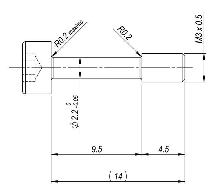 Tornillo pasador DIN 912 M3x14 titanio gr. 5 (6Al4V). Según dibujo