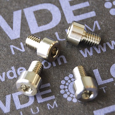 Tornillo DIN 912 M4x6 mm. de titanio gr. 5 (6Al4V). Diámetro cabeza 7 mm. Altura cabeza: 4 mm. Para llave allen de 3 mm. Mecanizado CNC. Exhaustivo control de tolerancias.