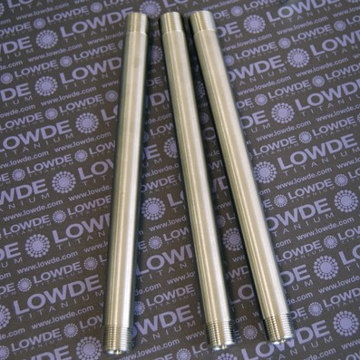 Eje hueco rueda trasera de KTM Freeride 350 2014 de Titanio gr. 5 (6Al4V). Mecanizado en aleación de Titanio gr. 5 (6Al4V) AMS 4928. El peso del eje es de 208 gramos. Diámetro: 20 mm. Longitud total del eje: 248 mm. Rosca en ambos extremos de 15 y 18 mm. de longitud. Paso rosca: 1,50. Ahuecado interior de Ø12 mm. (igual que el original de acero).