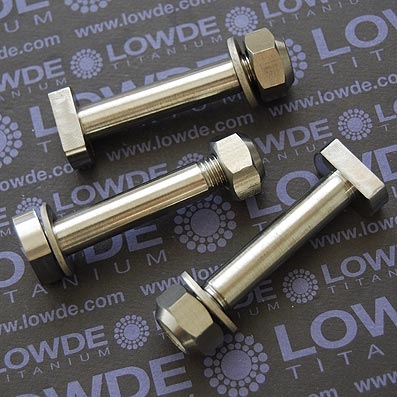 1 Eje amortiguador M10x56 mm. de titanio gr. 5 (6Al4V), incluye arandela y tuerca. Diámetro máximo cabeza: 22 mm. Distancia entre partes rectas cabeza: 13,5 mm. Grosor cabeza: 6 mm. Longitud tornillo (L): 56 mm. Longitud rosca M10x1,25: 14 mm. Peso conjunto tornillo, tueca y arandela: 34 gr. Tuerca autoblocante DIN 985 de titanio gr. 5 (6Al4V), hexágono para llave de 17 mm. Diámetro exterior arandela: 20 mm. Grosor arandela: 2 mm.