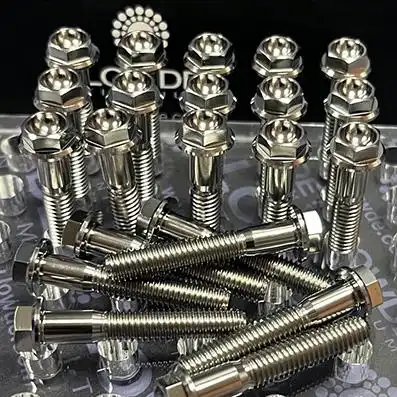 1 Tornillo hexagonal con balona M6x1,00x35 mm. de Titanio gr. 5 (6Al4V) ASTM B348. Hexágono para llave de 8 mm. Diámetro balona: 11 mm. Lote.: LWD/ZR/24985-25060908