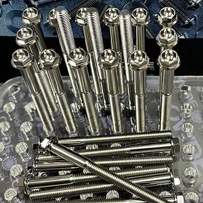 1 Tornillo hexagonal con balona M6x1,00x75 mm. de Titanio gr. 5 (6Al4V) ASTM B348. Hexágono para llave de 8 mm. Diámetro balona: 11 mm. Longitud roscada: 50 mm. Lote.: LWD/ZR/24985-25060908