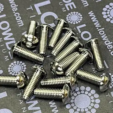 1 Tornillo de botón ISO 7380 M5x0,80x20 mm. deTitanio gr. 5 (6Al4V) ASTM B348. Cabeza forjada, mecanizado, fondo de huella estampada, rosca laminada. Diámetro cabeza: 9,5 mm. Altura cabeza: 4 mm. Para llave allen de 3 mm. Lot.: LWD/ZR/250310-25060905